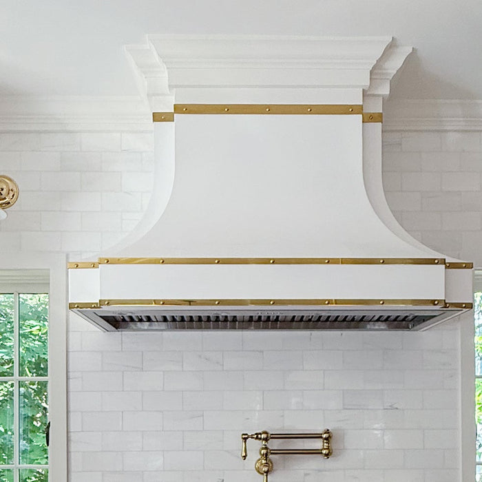 View full detailsElevate your kitchen with the RangeHoodMaster Luxury Custom Brass Box Range Hood. Its unique rib design in brass good accents adds a touch of luxur...