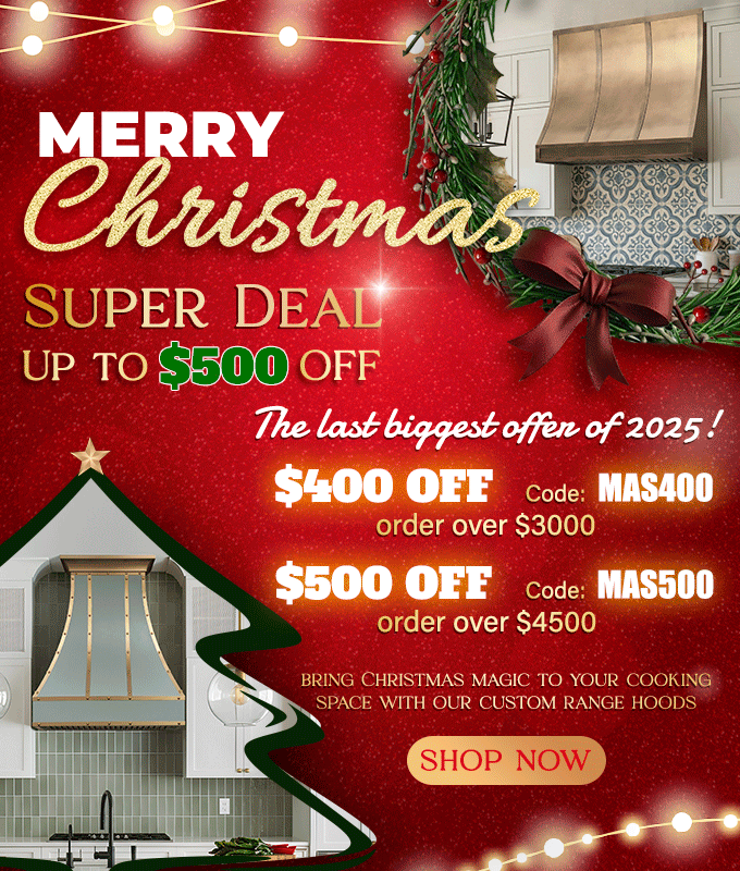 View full detailsThe copper range hood features a vintage luxury warmth touch to your kitchen that comes with a gorgeous royalty apron design. This hood will ideal ...