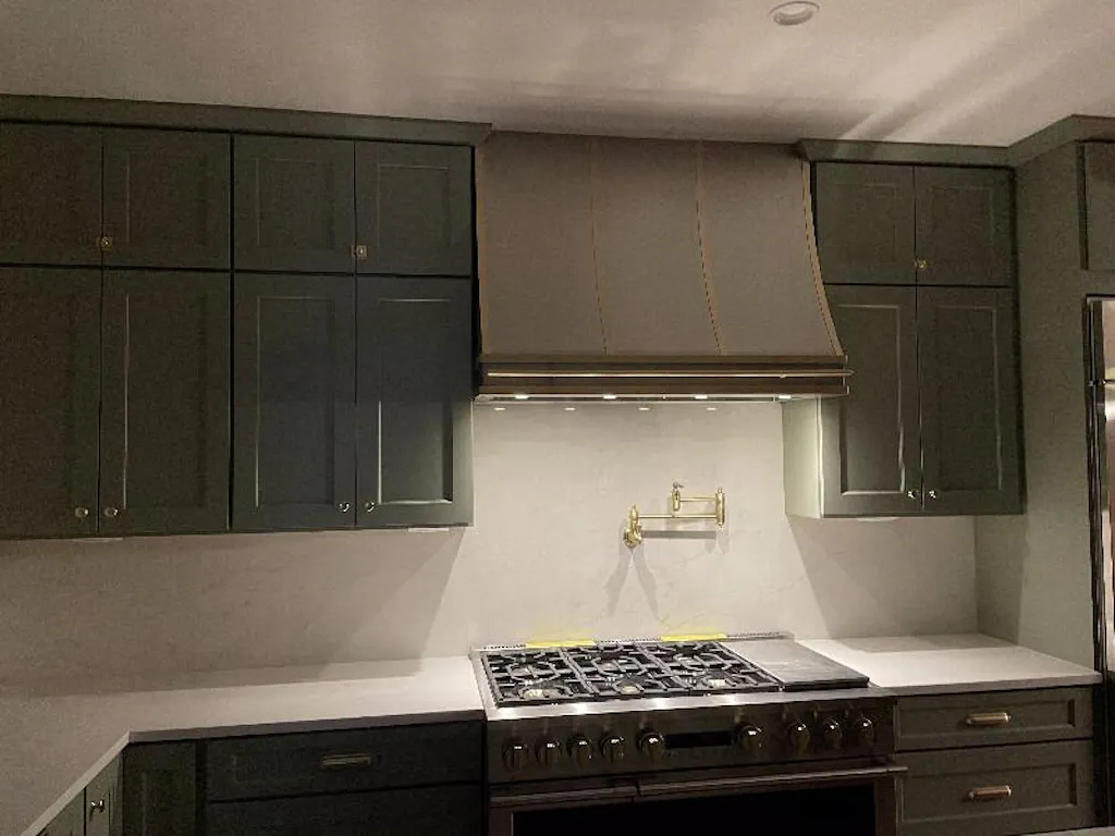 The SH8-MA custom stainless steel vent hood offers a modern take on hood designs. Crafted from solid stainless steel and featuring signature mirror brass straps, the hoods are highly durable and stunningly beautiful. This unique design hood that is sure to be the centerpiece of your kitchen.