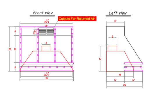View full detailsSH11-4TRM stainless steel range hoodSize: 36''w x 30''h x 24''d, wall mountedBody: standard finishStraps & Rivets: standard finishVentilation: ...