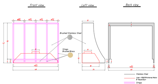 View full detailsSH8-4TR42"W x 36"H x 21''DBody: Brushed Stainless Steel Straps only: Brushed brassVentilation: hood only