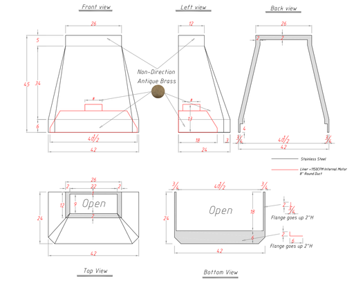 View full detailsRHM Sloped Handcrafted Brushed Brass Custom Vent Hood Base PriceBody Finish: Brushed Gray Stainless SteelNo Straps & RivetsSize:42''W x 30''H x...