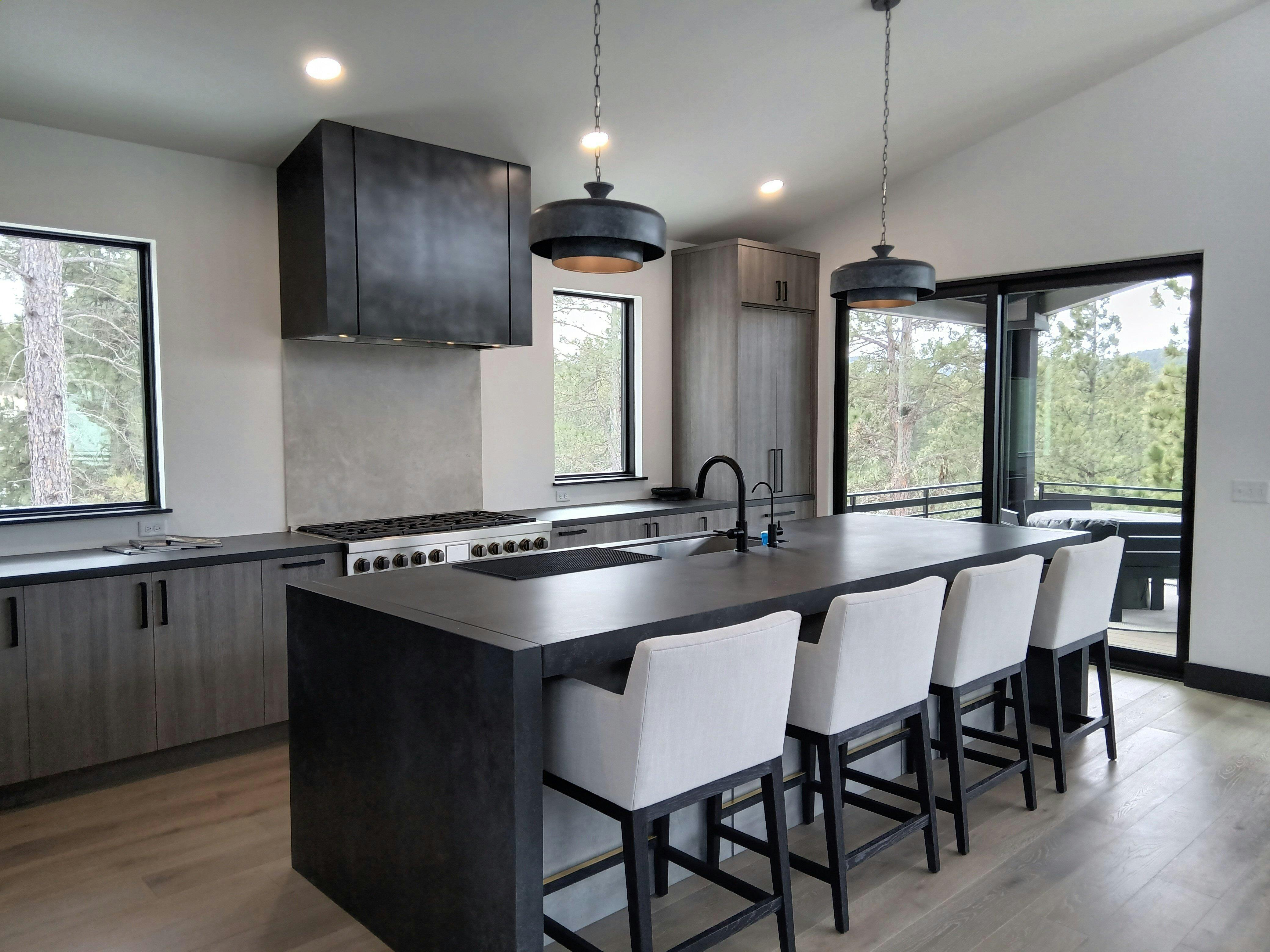 This handcrafted range hood features our signature antique blacken zinc finish, offering rich texture and depth. The custom notch design adds a refined architectural touch to this zinc hood, blending classic character with modern elegance. Perfect for kitchens seeking a bold yet timeless centerpiece. Every detail is built to elevate your space with lasting style.