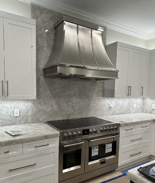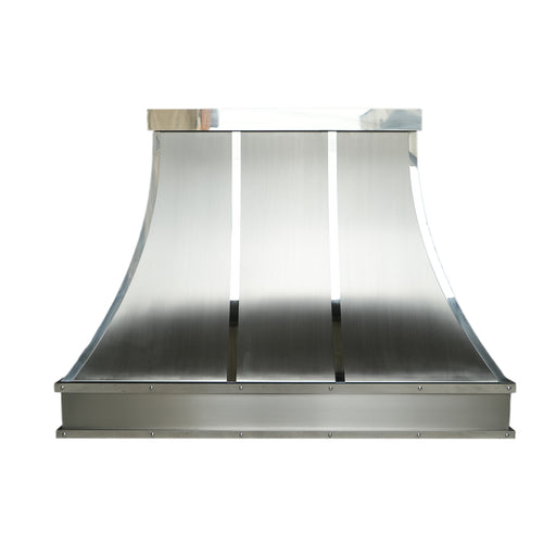 Add a radiant touch to your kitchen with this sweep brushed stainless steel custom range hood. With its mirror-like crown and polished bands, it is...