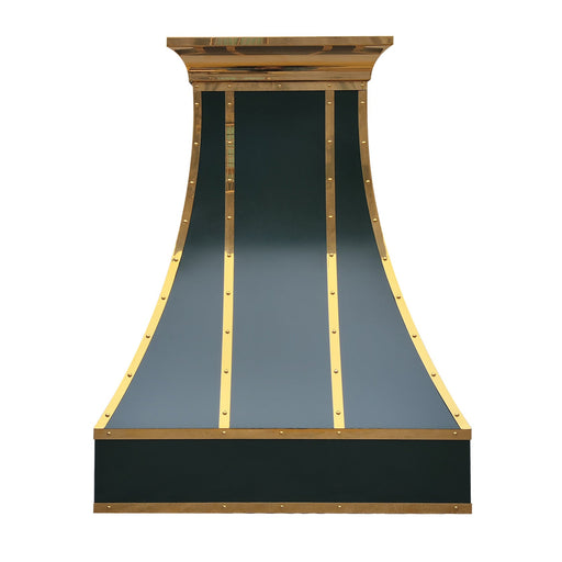 The RangeHoodMaster SH7 stainless steel range hood features brass accent and arched apron designed. The black finish and brass accent of this range...