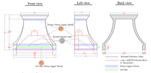 We look for months for a custom copper range hood and are thrilled with our finished hammered copper hood and chimney! It is a gorgeous addition to our newly remodeled kitchen. The staff provided very detailed drawings and were very highly attentive to our desired design specs. The hood was shipped in an extremely sturdy crate so as to prevent any chance of damage. Definitely worth the wait!!