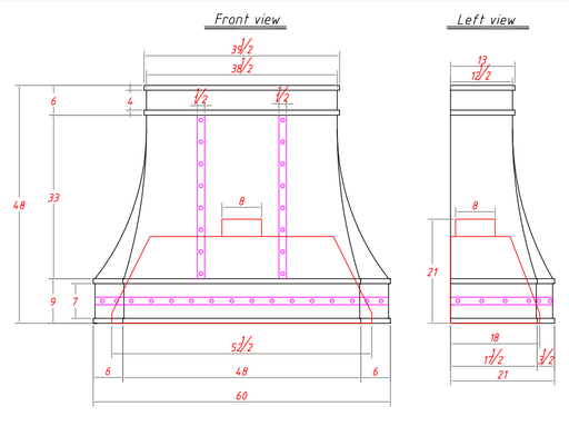 View full detailsRHM Copper Custom Kitchen HoodBody finish: standard regular finish21"D, wall mounted48'' Width x 30'' Height48" Liner+1150 CFM Internal Motor (8'' ...