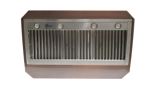 RHM Custom Copper Range HoodBody Finish: standard regular finish21"D, wall mounted36'' Width x 27'' Height36" Liner+390 CFM Internal Motor (7" roun...