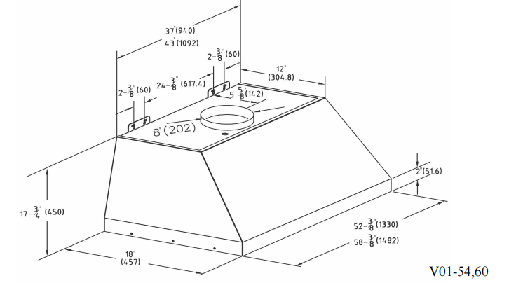 Rangehoodmaster 60-inch Hood liner + Internal Motor Specifications