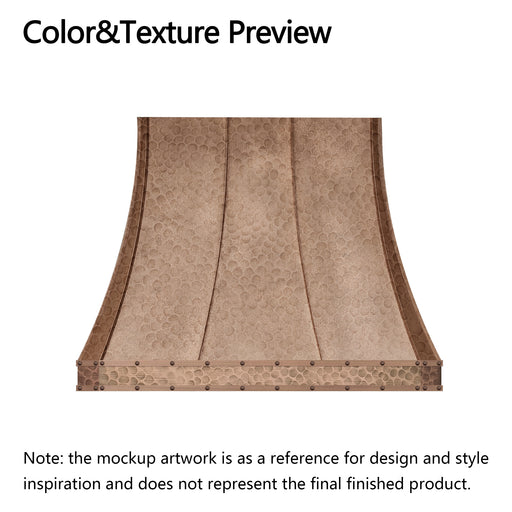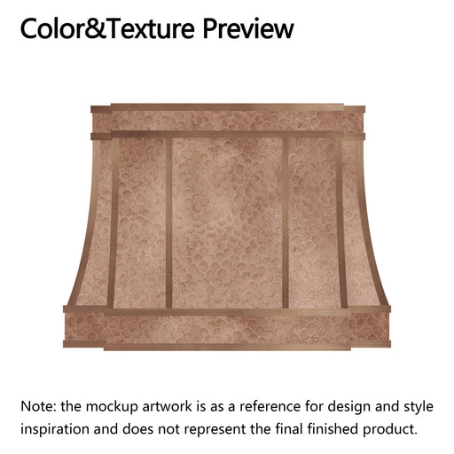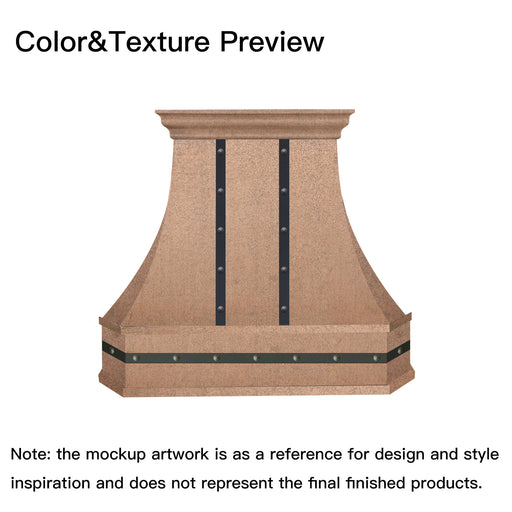 View full detailsRHM Copper Custom Range Hoodbody finish: Fired Patina Light Hammered21"D, wall mounted36'' Width x 27'' Height36" Liner+610 CFM Internal Motor (6" ...