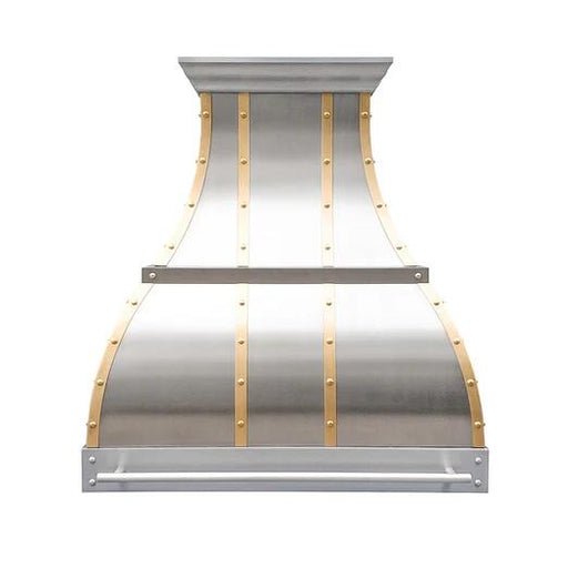 View full detailsRHM Sweep Stainless and Brass Custom Range Hood SH3-C2BTRMBody finish: Standard Stainless SteelMount type: 24'' D Wall MountDimensions: 54'' Width ...