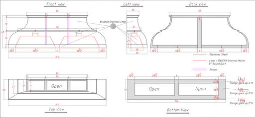 View full detailsRHM Custom Metal Range Hood21"D, wall mounted48'' Width x 30'' Height48" Liner+1150 CFM Internal Motor (8" round duct)