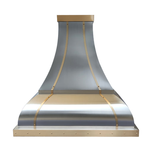 Mordern Curved Stainless Steel Range HoodRANGE HOOD COLOR: Brushed stainless steel STRAPS: Brushed BrassSize: 35W x 21D x 54H, wall mountedVentilat...