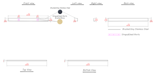 View full detailsFinish: Brushed gray stainless steel Straps and rivets: Brushed brass Size of Main Body: 49-7/8'' Width x 3-7/16'' Height x 1'' Depth