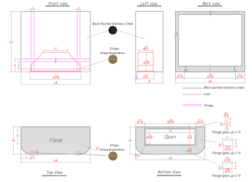 View full detailsRHM Custom Kitchen Range Hood for BrianSize: 48"W × 51"H × 21"D, wall mountedVentilation: 48" Liner+ 1150 CFM Internal Motor (8" round duct)Free S...