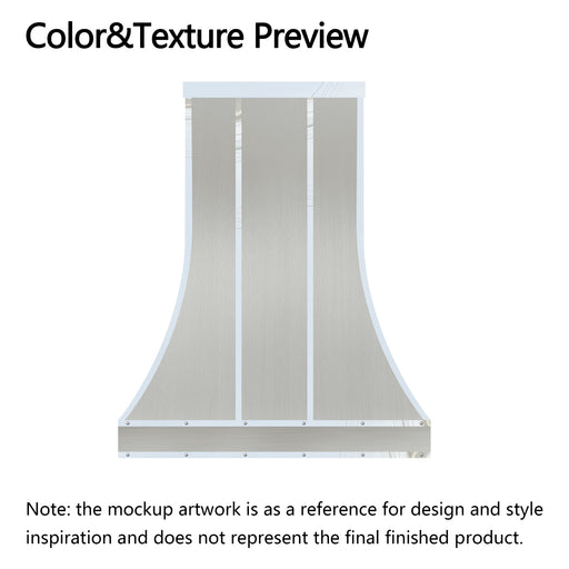 View full detailsRHM Custom Stainless Steel Range HoodBody finish: custom brushed nickel +$400with straps and rivets24"D, wall mounted36'' Width x 33'' Heighthood o...