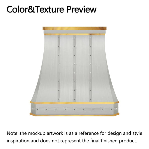 View full detailsSH5-LF-R02 custom stainless steel range hoodBody Finish: brushed brass finish as the website pictureSize: 48''W x 27'' H x 24'' D, wall mountedVent...