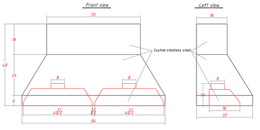 View full detailsRHM Custom Stainless Steel Range Hoodbody finish: custom stainless steel finish +$20033"D, wall mounted84'' Width x 48'' Height42" Liner+1150 CFM I...