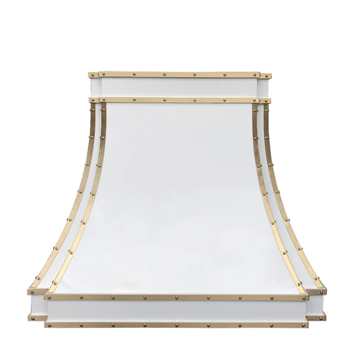 View full detailsRHM Custom Stainless Steel Range Hoodbody finish: custom color-Sherwin Williams Extra White SW 7006straps and small rivets: brushed brass21"D, wall...