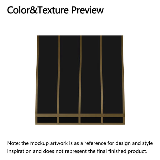 View full detailsRHM Custom Stainless Steel Range HoodBody Finish: Black Painted Stainless Steelstraps only: antique brushed brass21"D, wall mounted48'' Width x 48'...