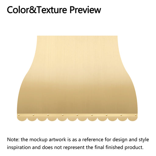 View full detailsRangeHoodMaster Custom Scalloped Range Hood SH41-BR features a stunning brass finish with a beautifully handcrafted scalloped apron. This range hoo...