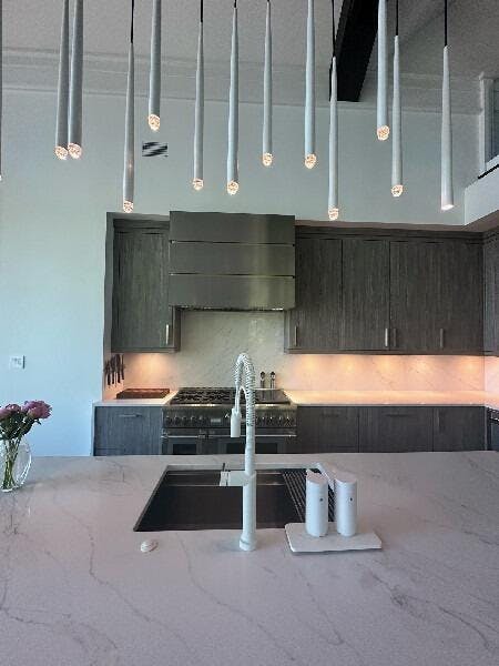 It is not recommended to use the FS internal motor hood ventilation (11'' deep) as it is less than 18'' deep, which will affect the hood exhaust performance in the kitchen due to the limited coverage area above the stove, and it will also be noisier due to the smaller space. The blower may struggle to draw in air efficiently without adequate space for proper air circulation, leading to decreased performance.